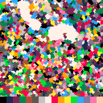 I am referencing Reddit's april fools 2017 joke, where they made a subreddit called place. It was a 4k by 4k pixel area. You could place down 1 pixel of a single color, and you have to wait about 5 minutes to do it after each time. Some people even formed groups dedicated to making specific shapes and symbols, like the "Rainbow Roaders"I think they were called. This image reminded me of that.